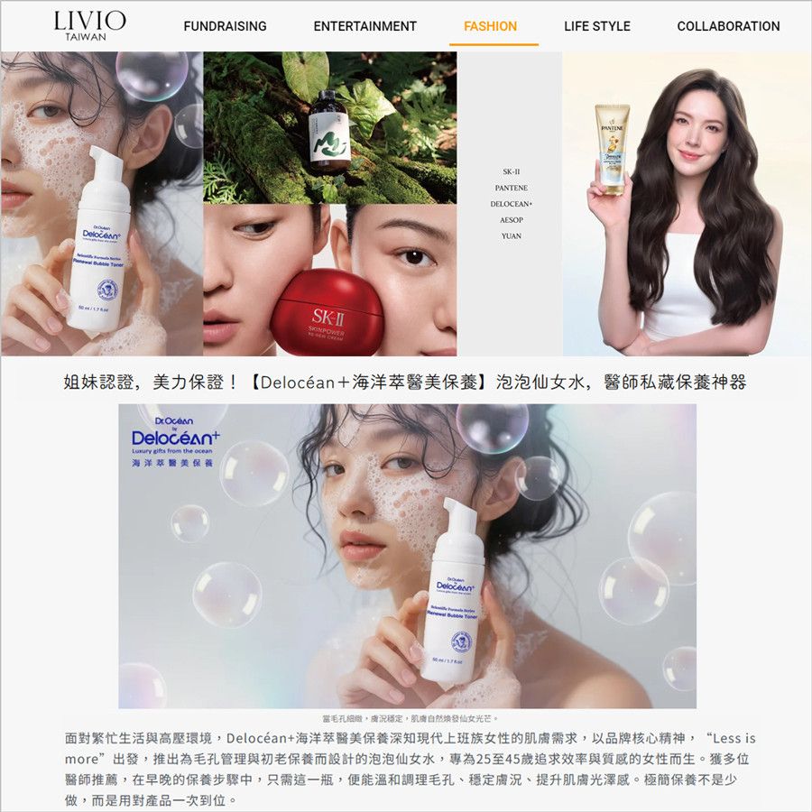 Livio生活網 │ 2025-07-11 醫師私藏保養神器 Delocéan+ 泡泡仙女水,毛孔out!粉刺少了,肌膚更彈了! more |